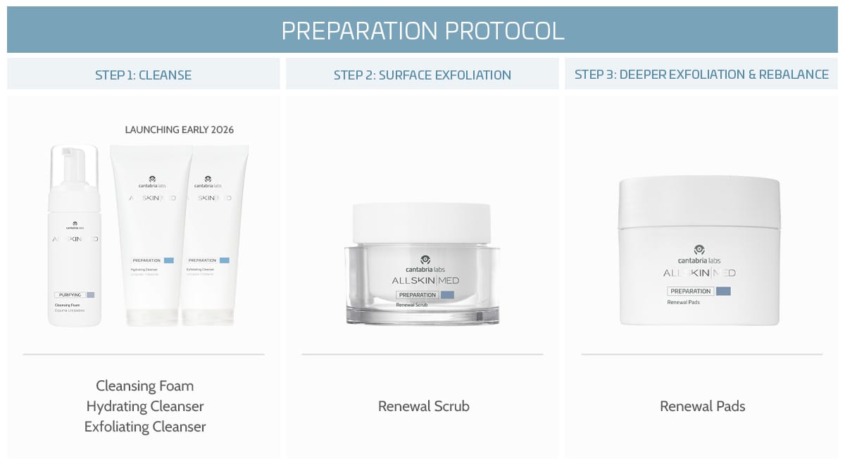 The success of the ALLSKIN | MED Prescriptive, Medical-Grade Regimes depends on the essential step of the Preparation Protocol.